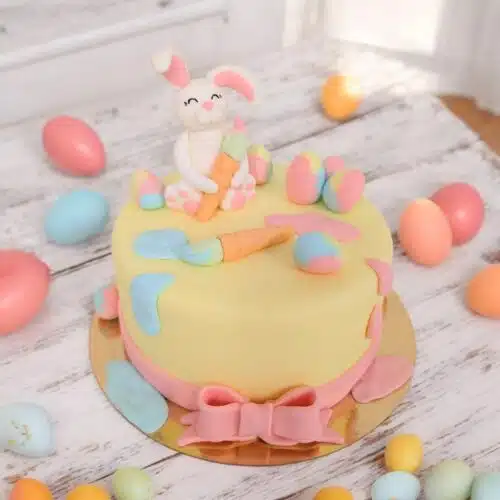 Allereerst beginnen we met het vullen van het taartje. Daarna gaan jullie leren hoe je het taartje afsmeert met botercreme, en bekleed met fondant zonder kreukels. Daarna gaan we de versieringen maken en het taartje omtoveren tot een schattig Paastaartje.