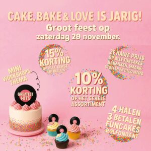Hiep Hiep Hoera! Op zaterdag 29 november vieren wij al weer de 14e verjaardag van de winkel Cake, Bake & Love!