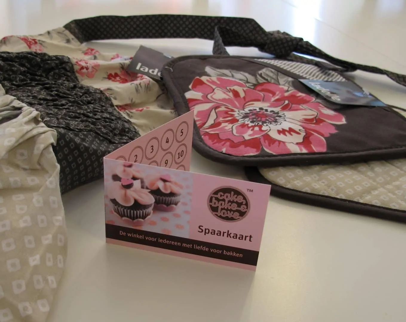 Bij Cake, Bake & Love hebben wij voor jou een fantastisch spaarsysteem, want met één volle spaarkaart krijg je al € 20,- korting op jouw aankopen. Zeker de moeite waard om te sparen dus!